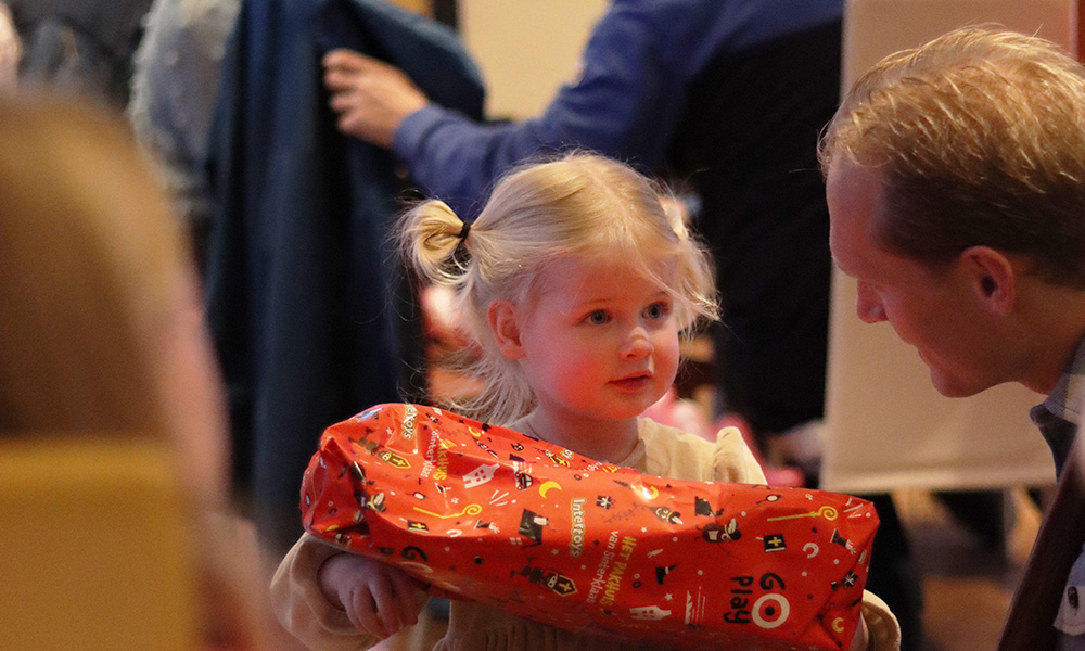 Tot grote tevredenheid van Sinterklaas zong iedereen uit volle borst mee. Nadat het liedje was afgelopen nam Sinterklaas plaats op zijn speciale stoel en één voor één mochten de kinderen bij hem komen. Het grote boek werd opengeslagen en Sinterklaas wist over alle kinderen iets te vertellen. Ieder kind ontving een mooi cadeau.