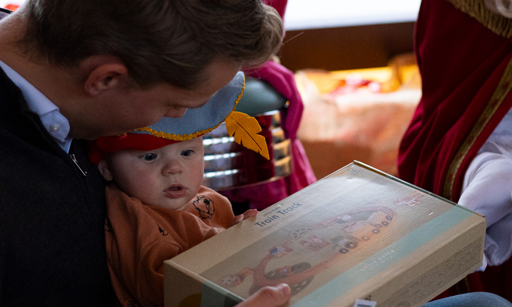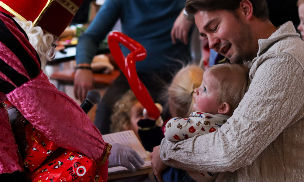 Tijdens het feest nam Sinterklaas plaats op zijn vertrouwde stoel en werden de kinderen één voor één bij hem geroepen. Het grote boek werd opengeslagen en met een glimlach wist Sinterklaas over elk kind een persoonlijk verhaal te vertellen. De ogen van de kinderen straalden toen ze hun zorgvuldig uitgekozen cadeautje in ontvangst namen.