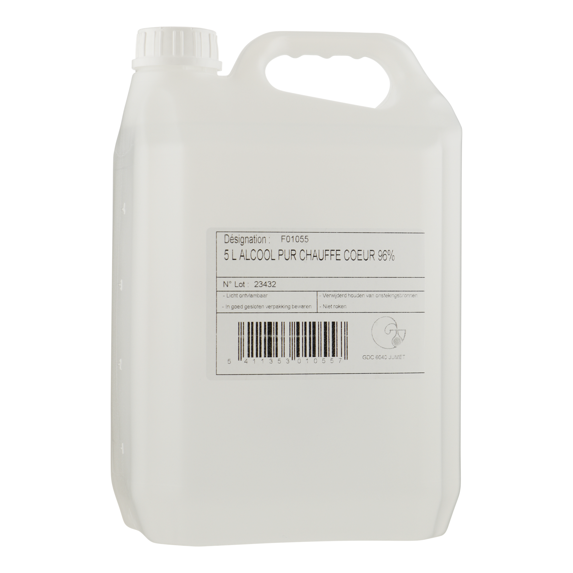 Pure alcohol van 96% in 5L verpakking, neutraal van smaak, geproduceerd door het Belgische Les Grandes Distilleries de Charleroi.