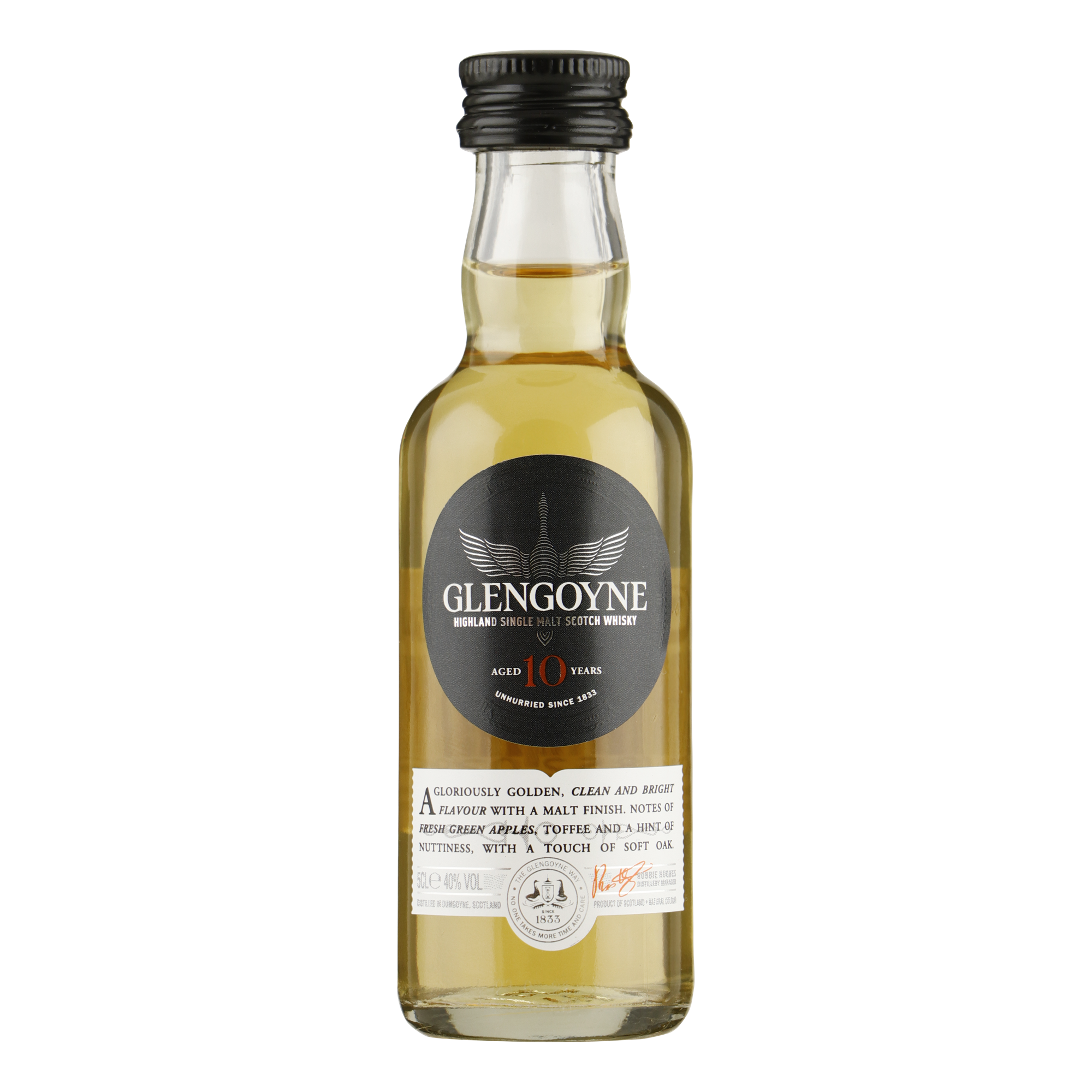 De Glengoyne 10 years Single Malt is zoet in de neus, met aroma's van toffee en popcorn en heeft de smaak van groene appels, specerijen, mokka en met een hint van zoete drop en noten. De afdronk is zoet en moutig. De perfecte klassieker voor een ontmoeting met de Glengoyne range.