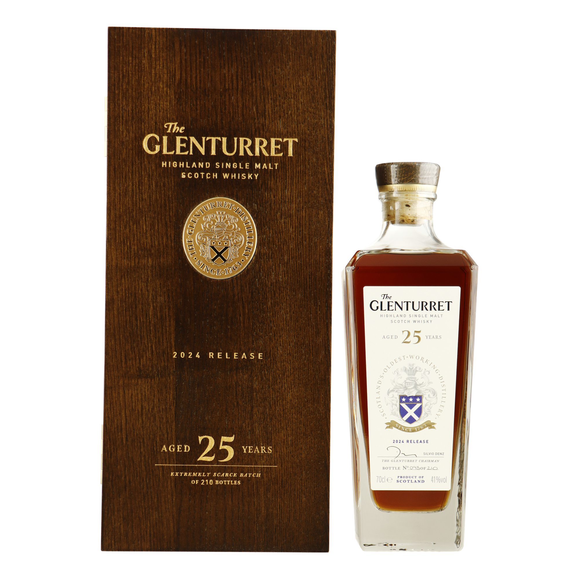 The Glenturret 25 Years Old is een zeer gelimiteerde expressie gemaakt van slechts drie vaten, elk met een heel ander karakter. Een kwart eeuw lang opgeborgen in de traditionele Dunnage warehouses, beschilderen twee Europese eiken Butts en één refill Hogshead bijna met de hand een fruitig, rijk canvas van smaak. Deze inspirerende samenkomst van vaten versterkt de kwaliteiten van de individuele vaten.