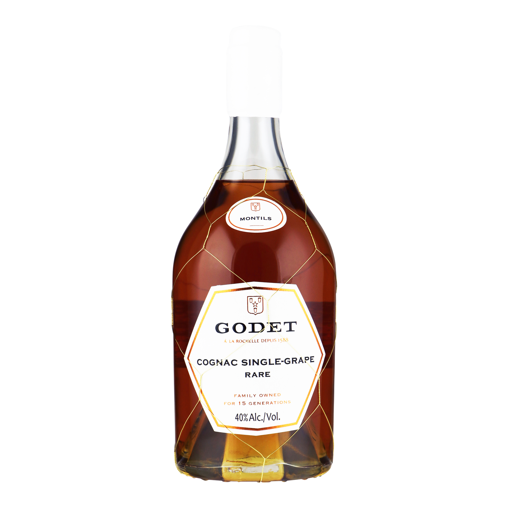 De Godet Single Grape Montils wordt gemaakt van 100% Montils druiven. De Montils druif groeit voornamelijk in de Charentes regio. Ze rijpen sneller en hebben een lagere zuurgraaad dan de Ugni Blanc druif. Het produceert spritis van hoge kwaliteit, maar de productie is zeer gelimiteerd.