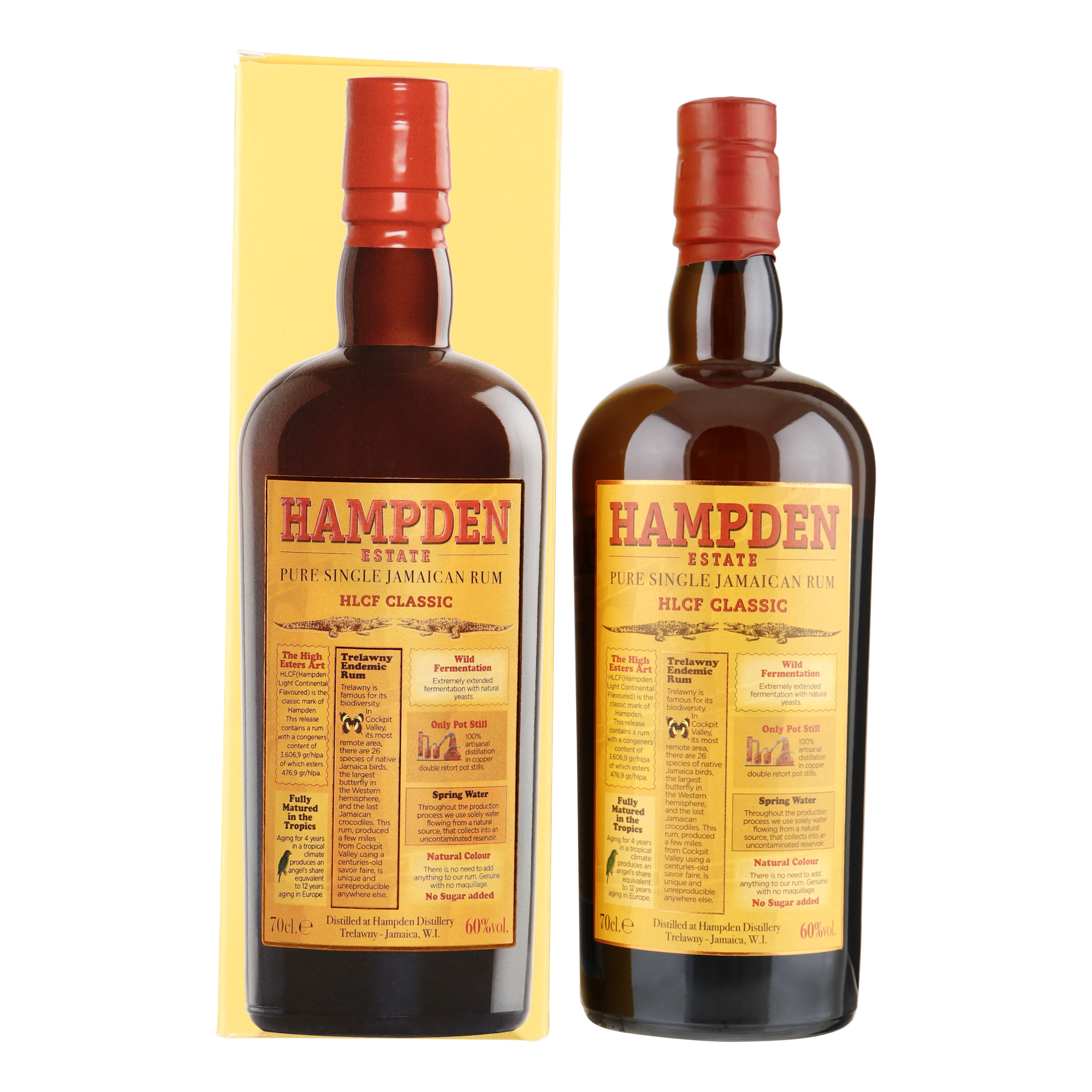 Hampden Estate is één van de oudste suikerplantages van Jamaica. Gelegen in het noordwesten van Jamaica, in het gebied van Trelawny, bevindt zich de prachtige distilleerderij van Hampden. Trelawny staat historisch gezien bekend als dé Grand Cru van Jamaicaanse rum en wordt gekenmerkt door een ongelooflijke biodiversiteit. Aan de ene kant kijkt het gebied uit op de Caribische zee en de vruchtbare vlaktes in het noorden. Aan de andere kant, richting het zuiden, bevindt zich Cockpit Country: een volledig ongerept bergachtig gebied bedekt met tropisch bos en de thuisbasis van de laatst overgebleven Jamaicaanse krokodillen, verschillende inheemse vogelsoorten en de gigantische gele staartvlinder.