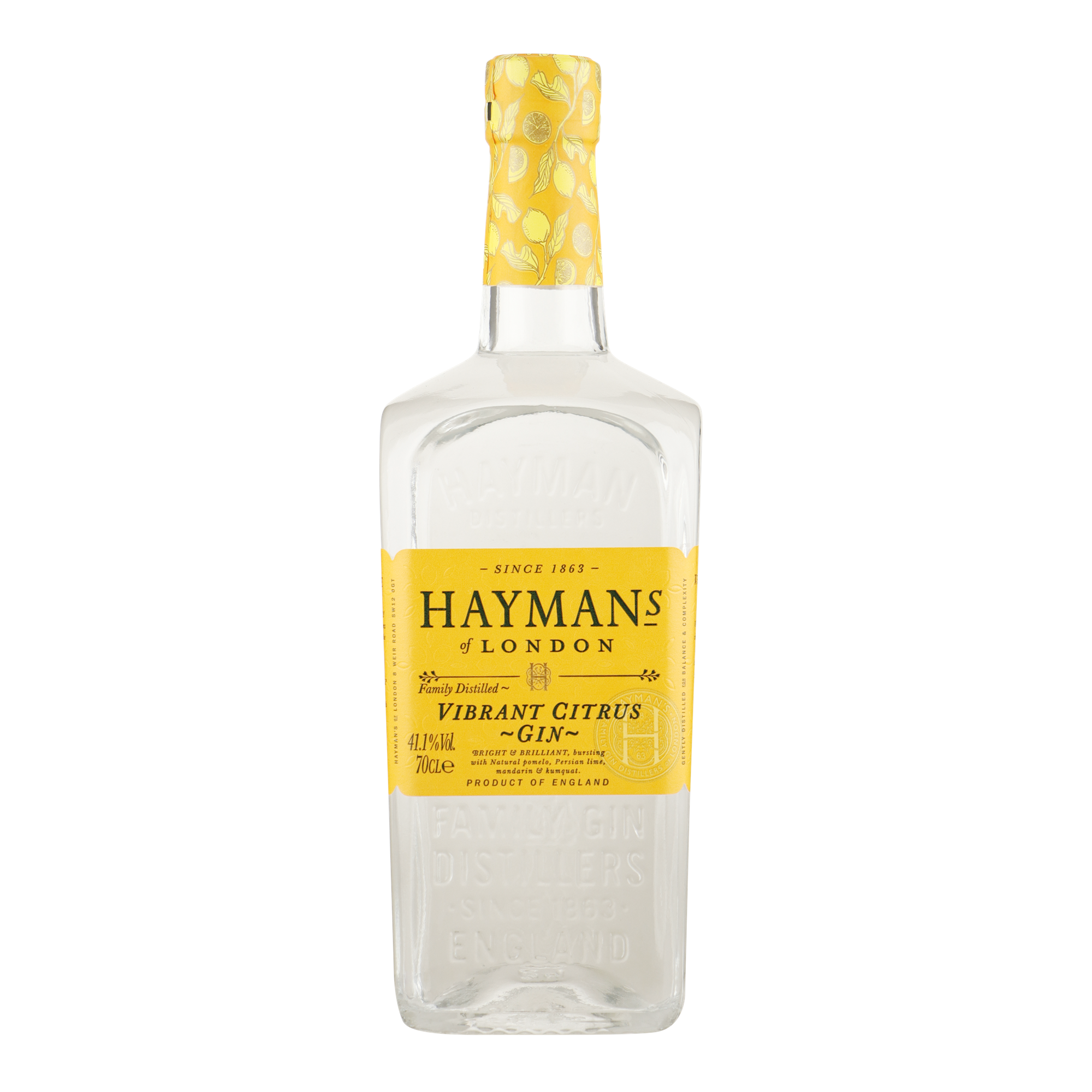 Hayman's Vibrant Citrus Gin is een elegante en heerlijk verfrissende gin, gemaakt met exotisch fruit (kumquat, Perzische limoen, pompelmoes en mandarijn). De diepte en levendigheid van deze gin zijn het resultaat van het op een natuurlijke wijze distilleren van de zongedroogde schillen van het exotisch fruit. Met het unieke tweedaagse distillatieproces, blijft de familie Hayman trouw aan 150 jaar gin geschiedenis.