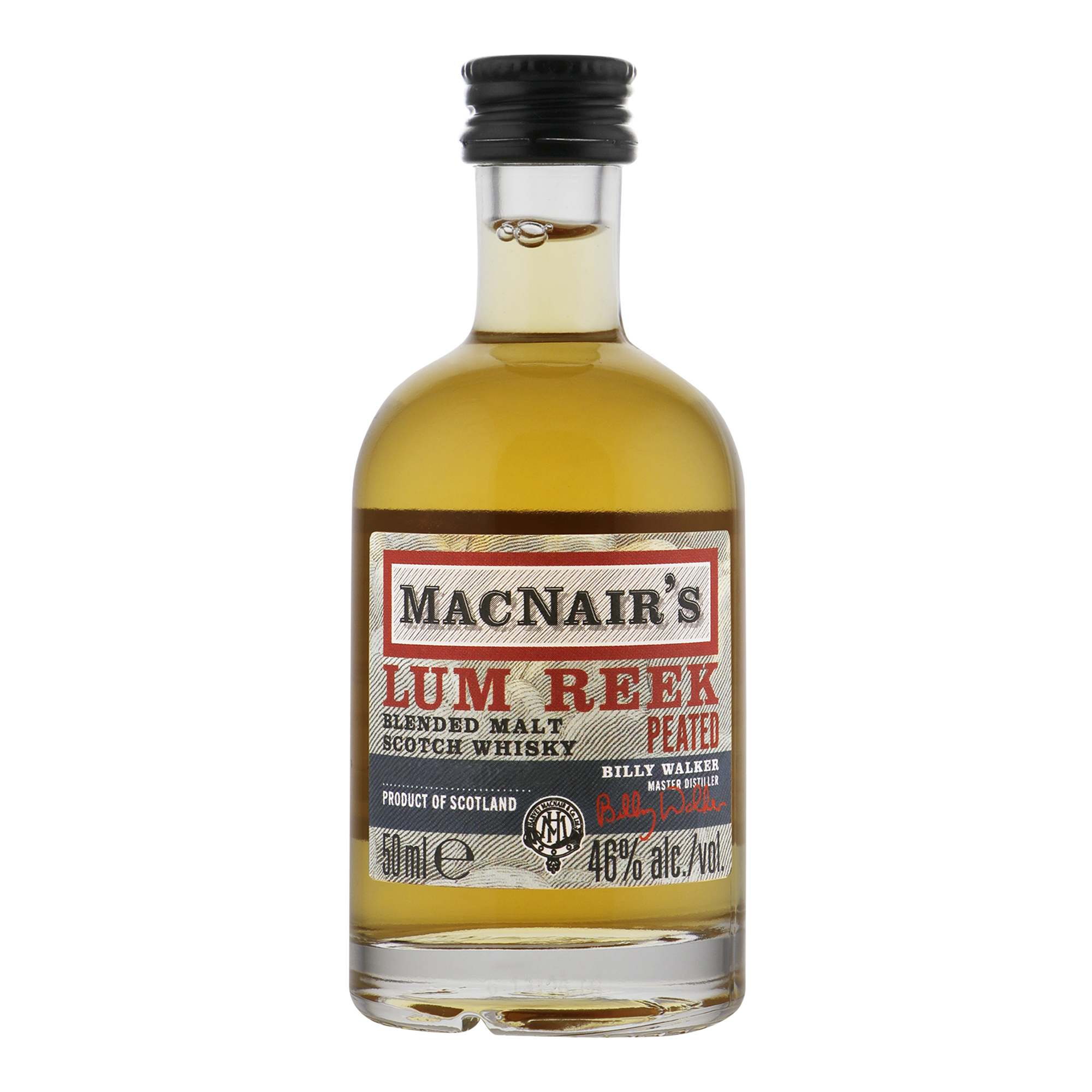 De MacNair's Lum Reek 12 jaar oud weerspiegelt Billy Walker zijn enorme ervaring als master blender, zijn creatieve vaardigheden en zijn deskundige kennis van houtbeheer. Een combinatie van whisky's die hebben gerijpt op bourbon, rode wijn en pedro ximenez vaten werden samen gemengd om deze rokerige malt te produceren.