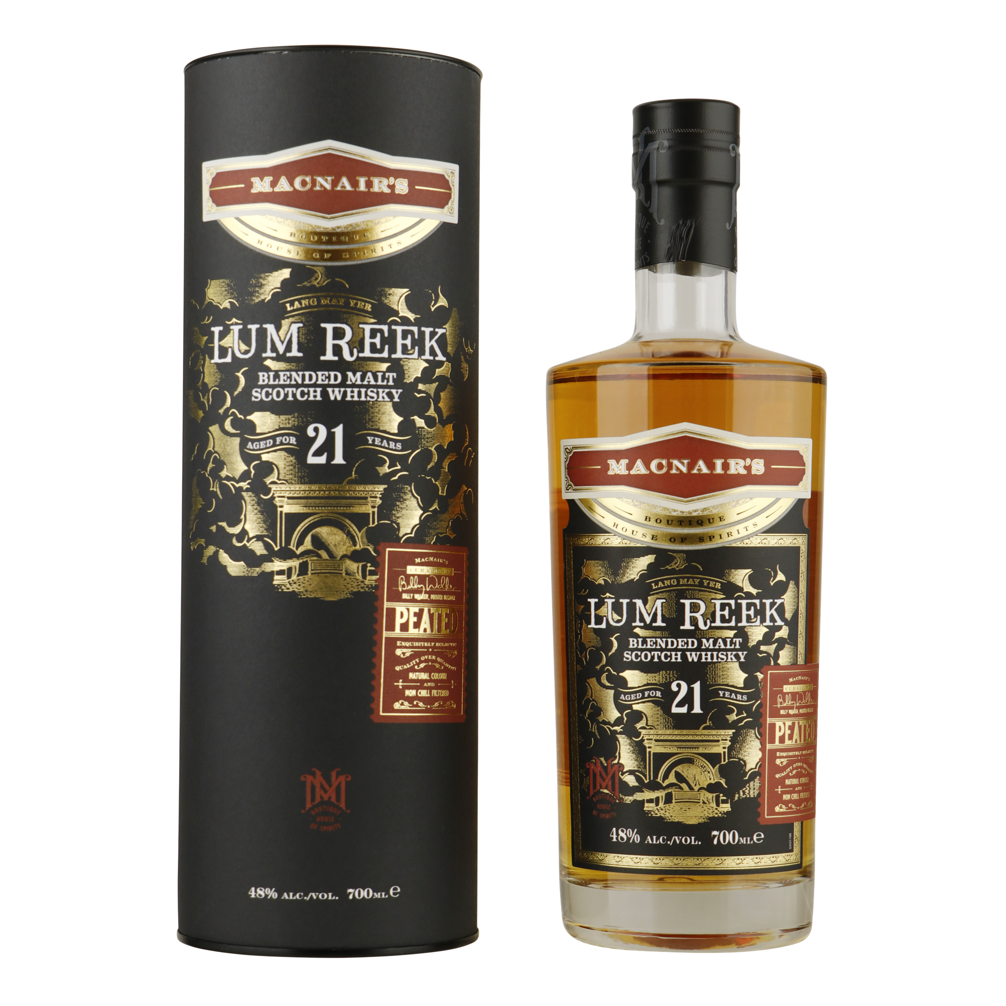 Vandaag de dag is Lum Reek een creatie van Billy Walker, één van de meest gerespecteerde blenders in Schotland. Door de jaren heen zijn talloze whisky's van zijn hand in de prijzen gevallen. Met de hedendaagse MacNair's Lum Reek brengt Billy een ode aan de master blender uit de Victoriaanse tijd. De Lum Reek serie is een zwaar geturfde blend van Islay en Speyside whisky's. Lum Reek heeft gerijpt in de magazijnen van The GlenAllachie Distillery en is niet koud gefiltreerd waardoor de whisky een mooie gouden gloed laat zien welke doet denken aan de fraaie kleuren op mooie herfstdagen waar Harvey MacNair zo van genoot.