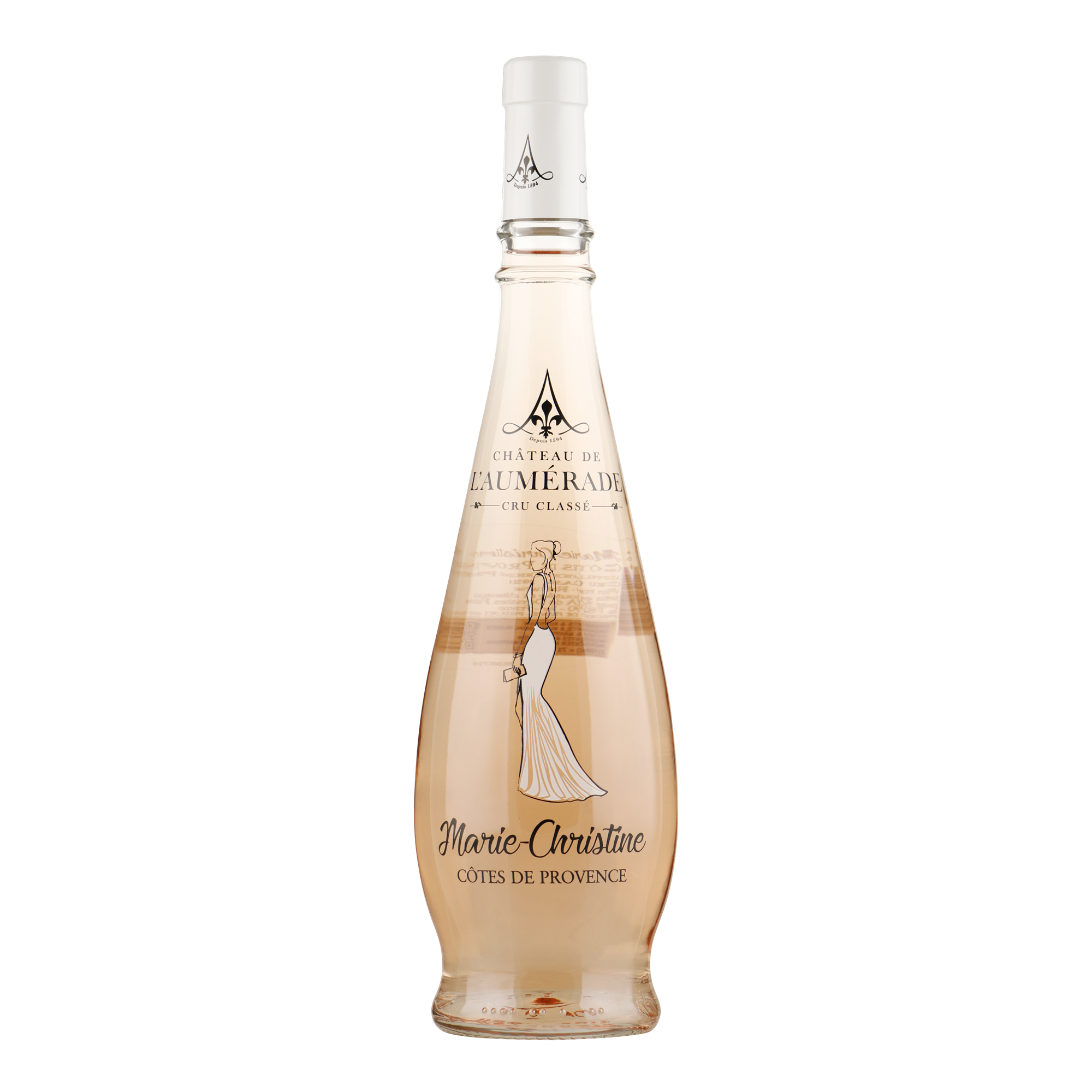 De Marie Christine Rosé heeft een zeer eigentijdse uitmonstering, al even verleidelijk als de wijn zelf, die de elegantie van de Provence optimaal tot uitdrukking brengt.