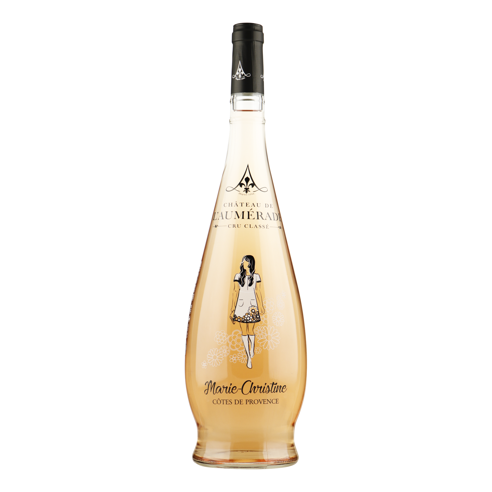 De Marie Christine Rosé heeft een zeer eigentijdse uitmonstering, al even verleidelijk als de wijn zelf, die de elegantie van de Provence optimaal tot uitdrukking brengt.
