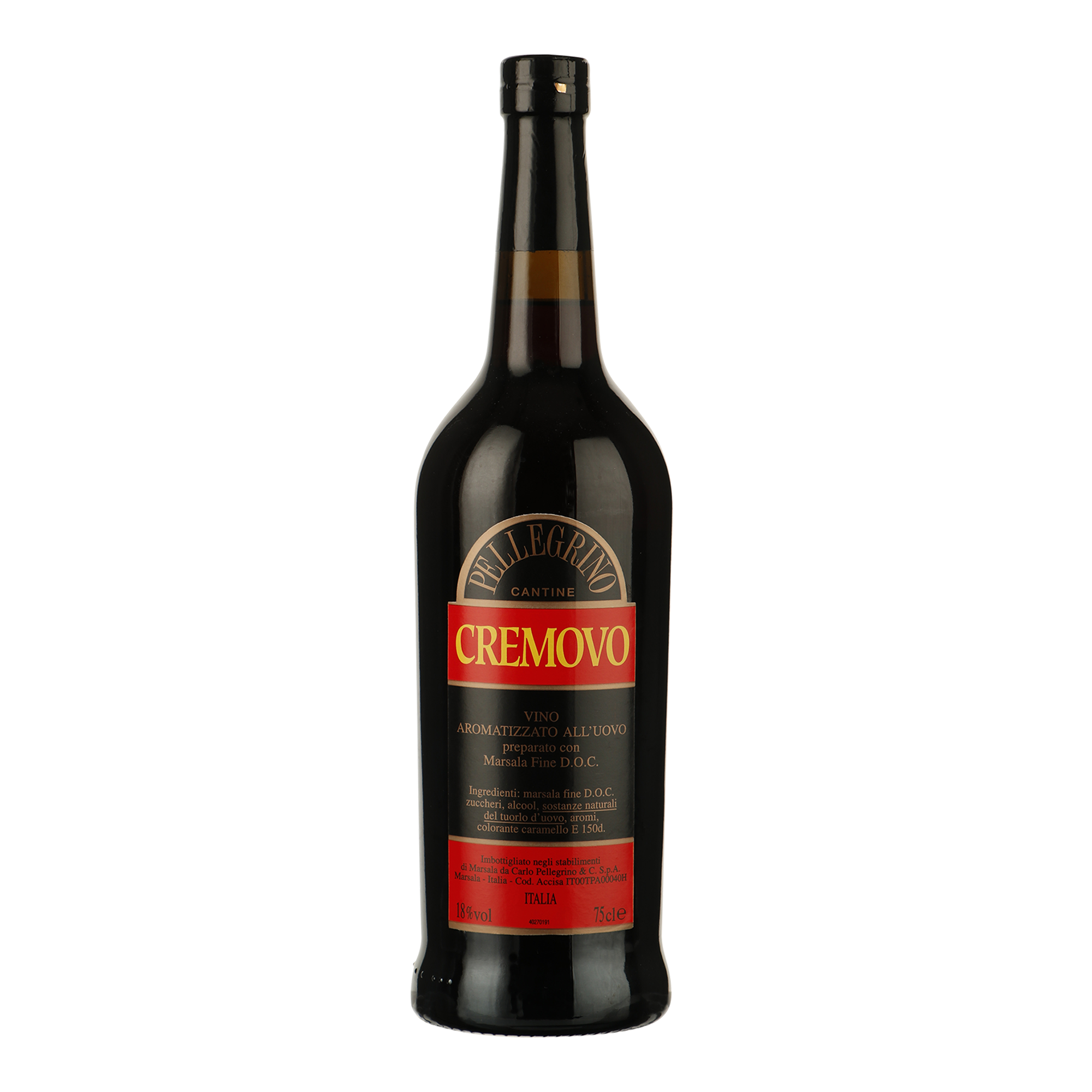 Deze Crema mandorla is gemaakt op basis van Pellegrino's Marsala Fine. De typische rijke marsalasmaak met toevoeging van ei-aroma's.