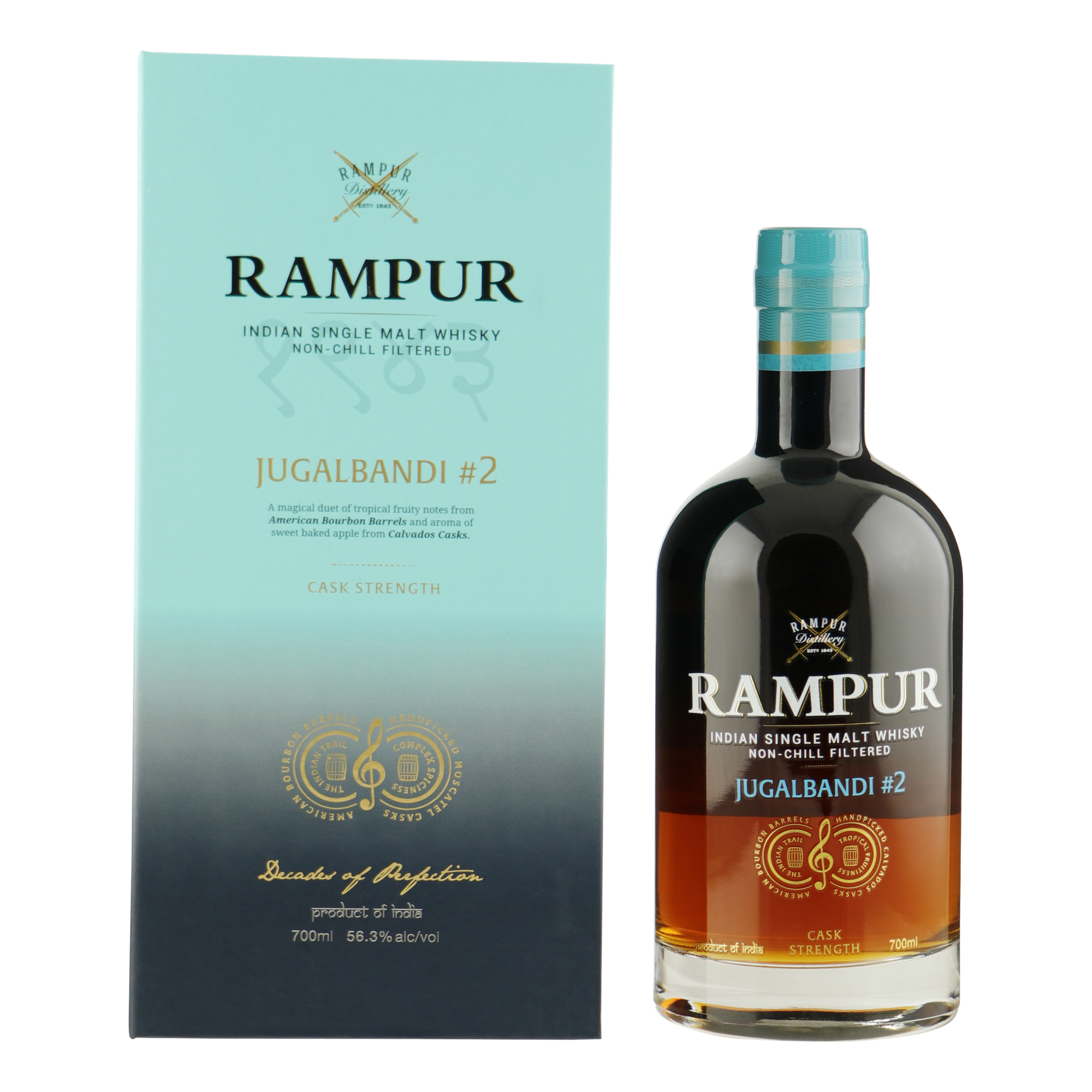 Jugalbandi #2 heeft gerijpt in Amerikaanse bourbon vaten in het klimaat van het noorden van India, waarna de whisky een finish heeft gekregen in zelf uitgekozen Calvados vaten uit Normandië. Het resultaat is een Jugalbandi met extra aromalagen van versgebakken appeltaart, peer, abrikoos en honing.