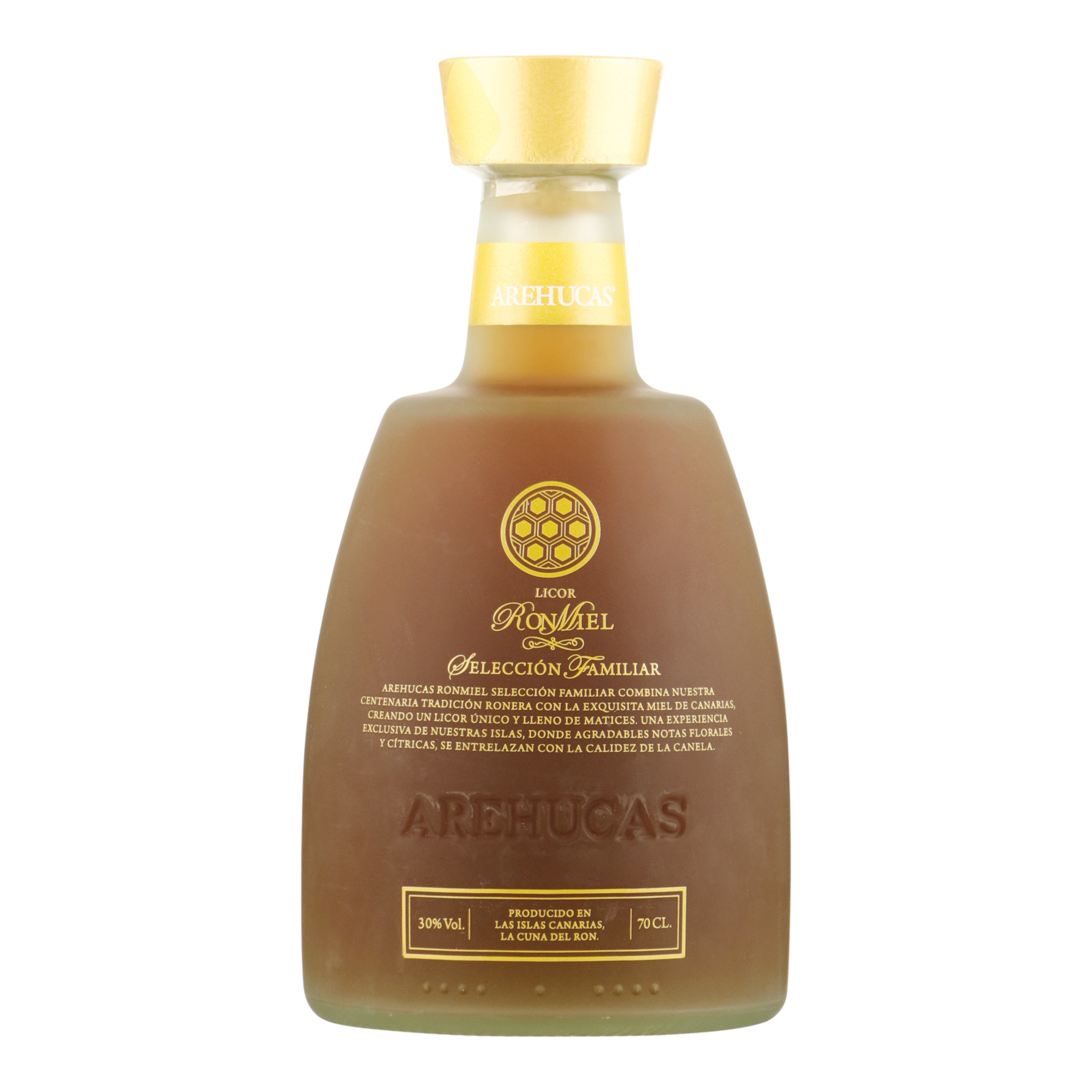 Ron Miel Selección Familiar is een unieke blend van honing en rum. De honing, afkomstig van de Tajinaste-bloem op de Canarische Eilanden, heeft een lichte, florale en fruitige smaak met een subtiele geur.