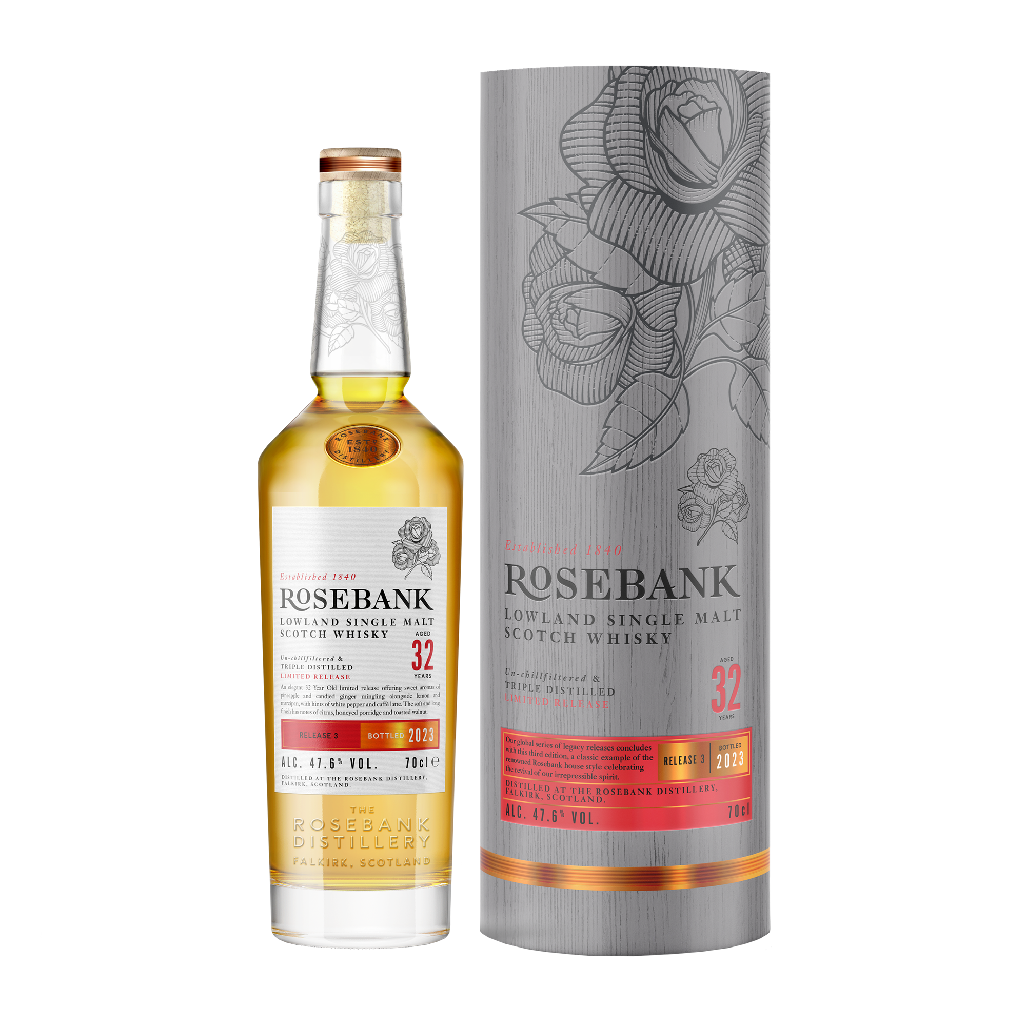 Een 32-jarige Lowland single malt whisky dat door Rosebank in de laatste drie jaar voorafgaand aan de sluiting van de distilleerderij werd gedistilleerd. Na meer dan drie decennia in eikenhouten vaten te hebben gerijpt kan de whisky omschreven worden als rijk en complex, met een elegant, evenwichtig en zacht karakter.