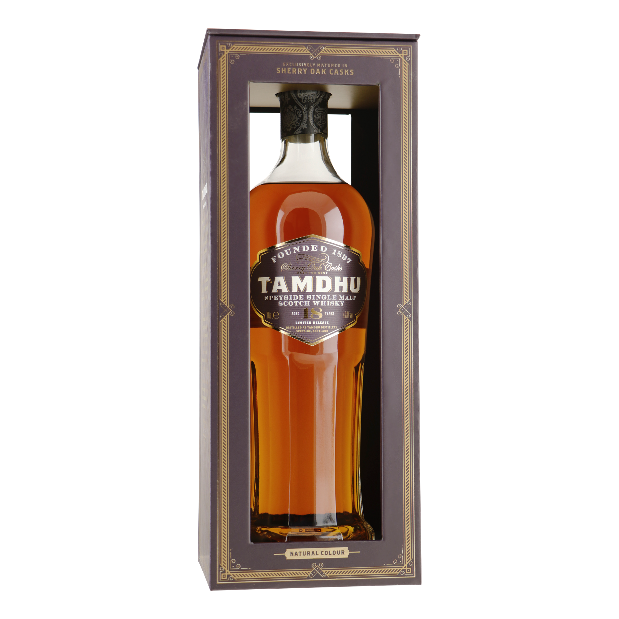 Tamdhu 18YO is een combinatie van Amerikaans eiken Oloroso en Europees eiken Oloroso-vaten. Het levenswater kenmerkt zich door het fruitige karakter na een vatrijping van 18 jaar op uitsluitend ex-sherry vaten. De whisky is gebotteld op 46.8% en niet koud gefiltreerd.