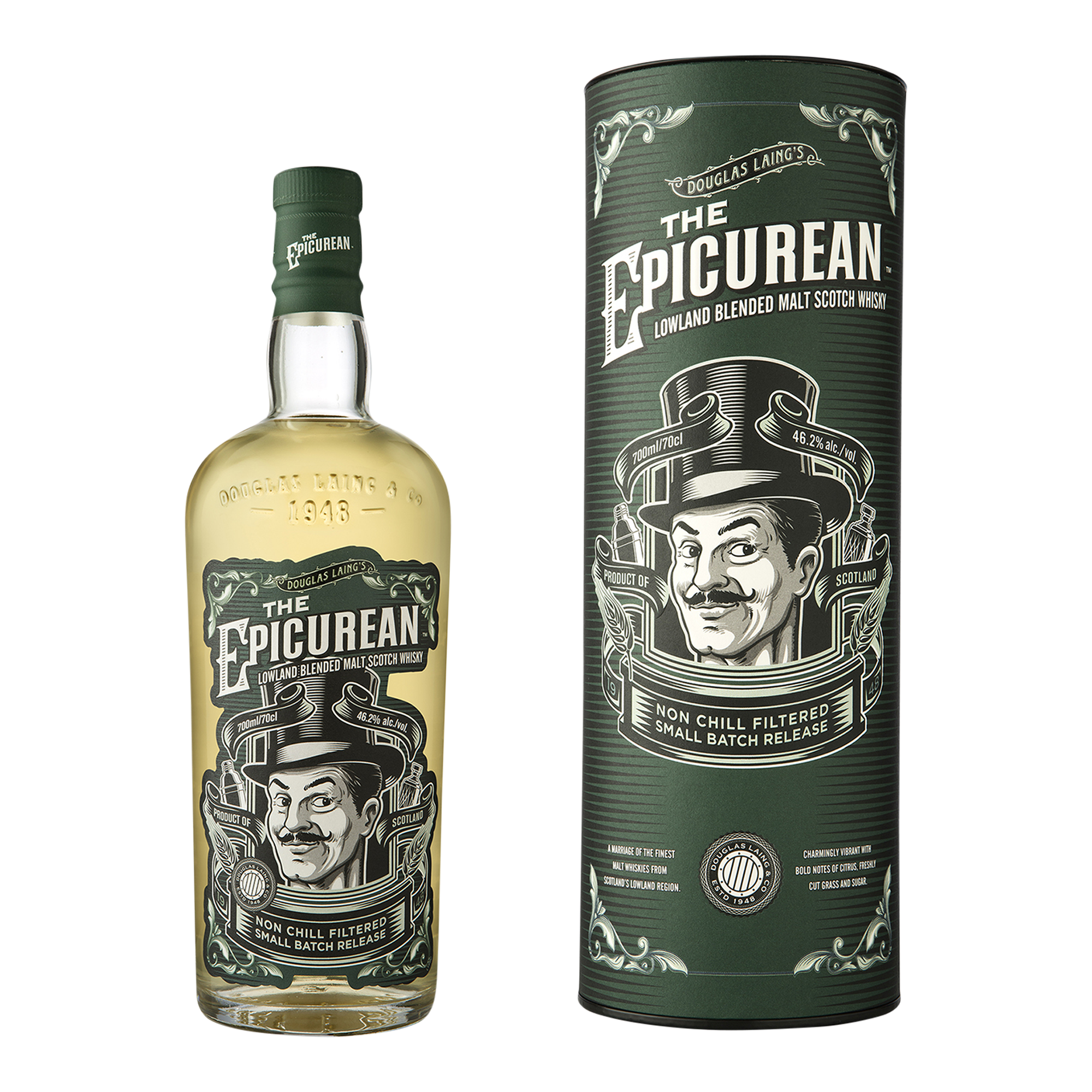 In het Glasgow van de jaren 30 van de vorige eeuw, was The Epicurean het middelpunt van elk feest. Overal waar hij binnenkwam om van een dram te genieten, werd hij omringd door aanbidders en wist hij ze aan zijn lippen te kluisteren door spannende verhalen over verre reizen, interessante ontmoetingen en heerlijk eten en dito drinken te vertellen. Deze expressie eert deze kleurrijke charmante, charismatische en humoristische persoonlijkheid. The Epicurean combineert een aantal van de mooiste Lowland Malts; een combinatie van het beste dat het oosten en het westen van Schotland te bieden heeft. In ware Douglas Laing stijl, zonder kleuring of chill-filtratie en gebotteld op 46,2% alcohol.