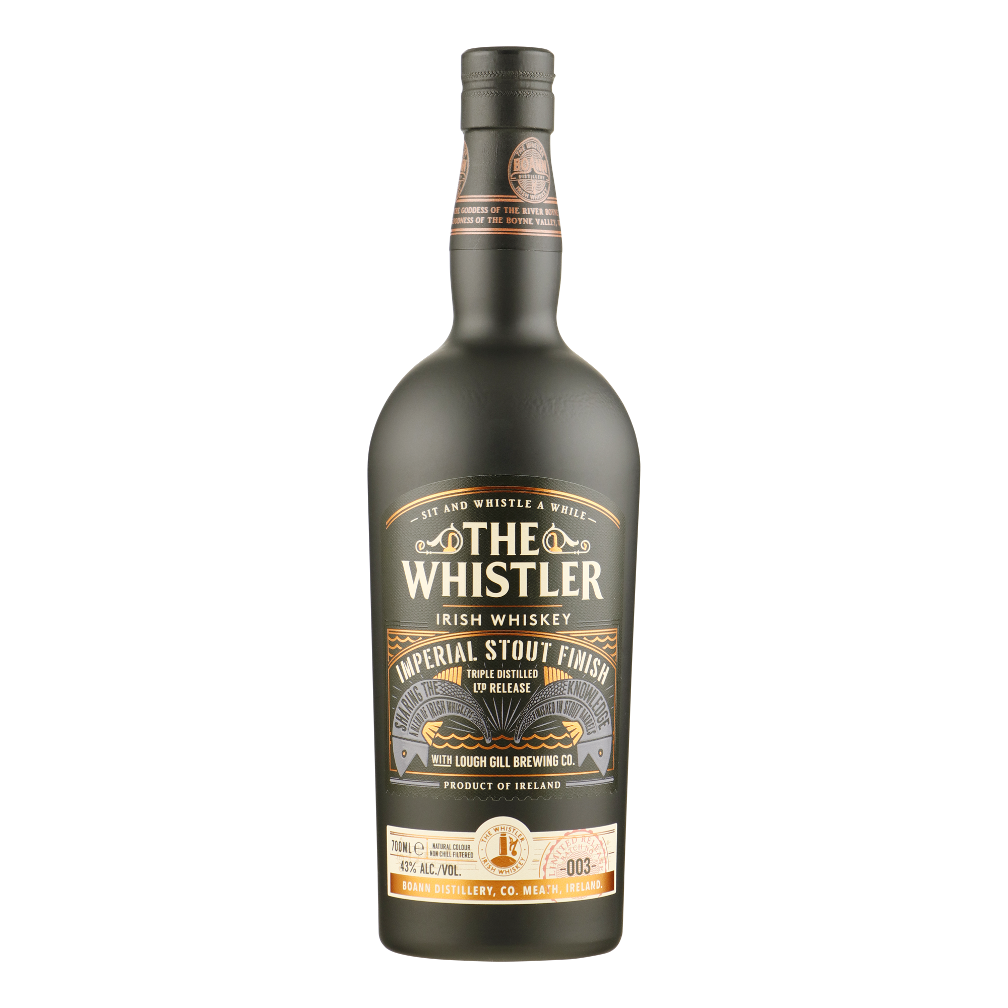 The Whistler Imperial Stout Cask Finish is gerijpt op vaten die eerst zeven jaar voor Single Malt zijn gebruikt, en aansluitend worden gevuld met stoutbier. Hierdoor kan het bier zijn prachtige rijke smaken meegeven aan het hout van het vat. Vervolgens worden deze 'gekruide' vaten opnieuw gevuld met een blend van Irish Malt en Single Grain whiskey's, welke diepe tonen van gebrande koffie en cacaobonen krijgen. De blend bestaat uit 50% wheat whiskey, 35% malt whiskey en 15% grain whiskey. De whiskey wordt voor minstens vier jaar in ex-bourbon vaten gerijpt, waarna het een finish van minimaal zes maanden krijgt in de Imperial Stout vaten. Drie keer gedistilleerd, non-chill filtered en in zijn natuurlijke kleur.
