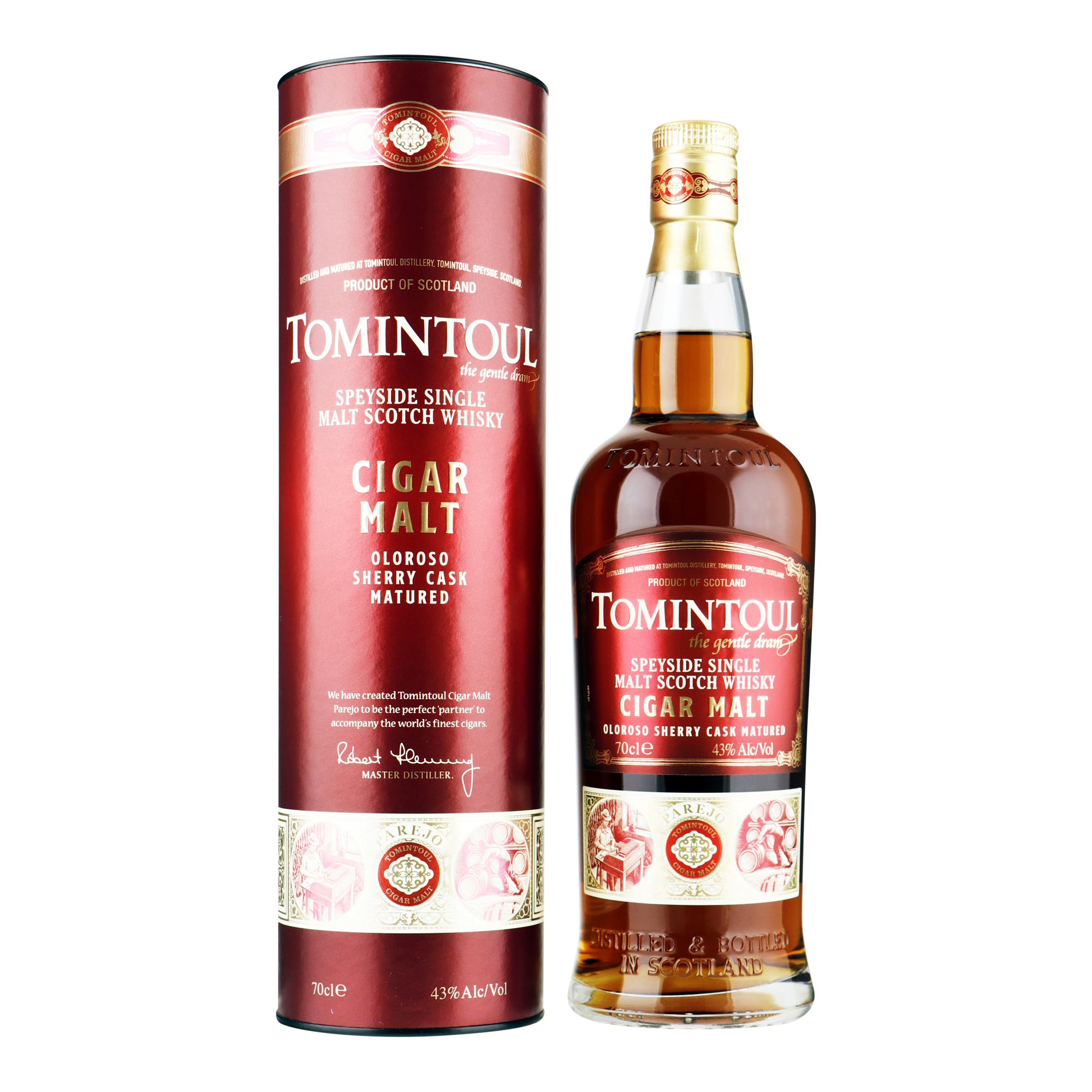 Een prachtig uitgebalanceerde Oloroso sherry vatgerijpte Tomintoul, die rijk, complex en vol van smaak is. Parejo betekent 'partner'. Dit aangezien Tomintoul Cigar Malt de perfecte partner is om 's werelds beste sigaren mee te begeleiden.